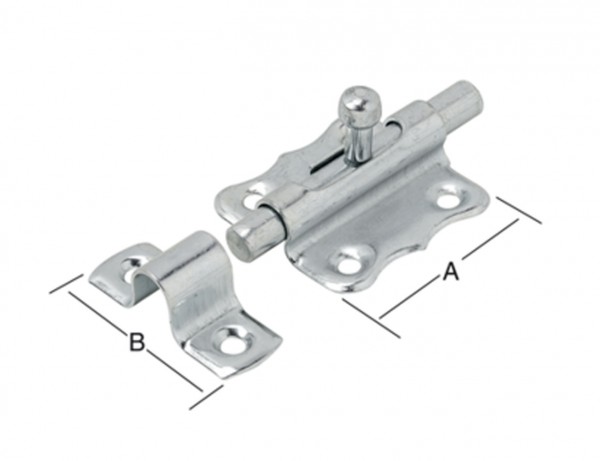 Grendelriegel mit Knopf und befestigter Schlaufe 47 x 46 mm galv. verzinkt, dickschichtpassiviert