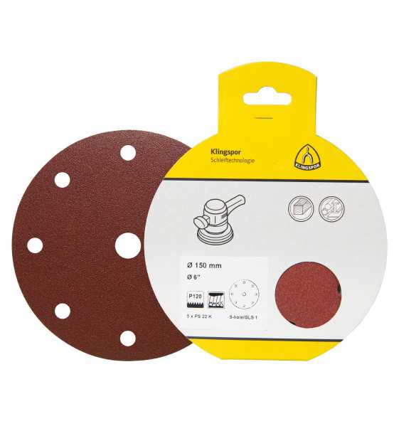 125 Korn 60 PS 22 K SB-verpackt 5 Stk. Schleifpapier, kletthaftend für Holz, Metall Universal 8 Absauglöcher ø 10 mm auf